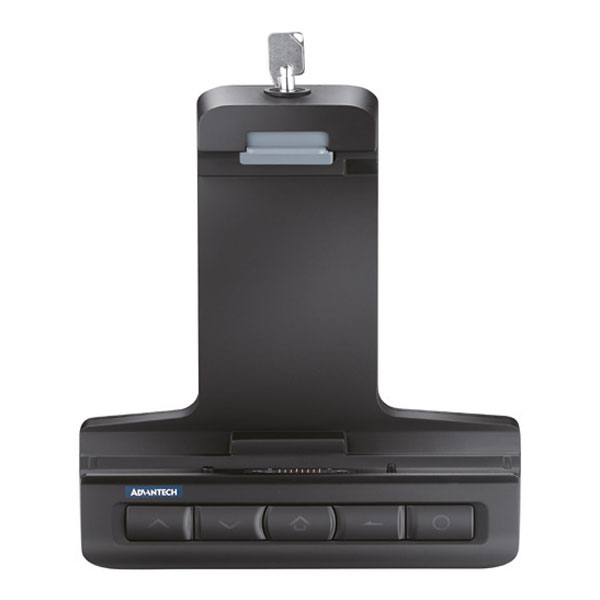 Die Docking-Station hat eine Diebstahlsicherung, Programmierbare Funktionstasten und ist mit dem Bordnetz kompatibel, dank des Spannungseingangs von 9–32 VDC.