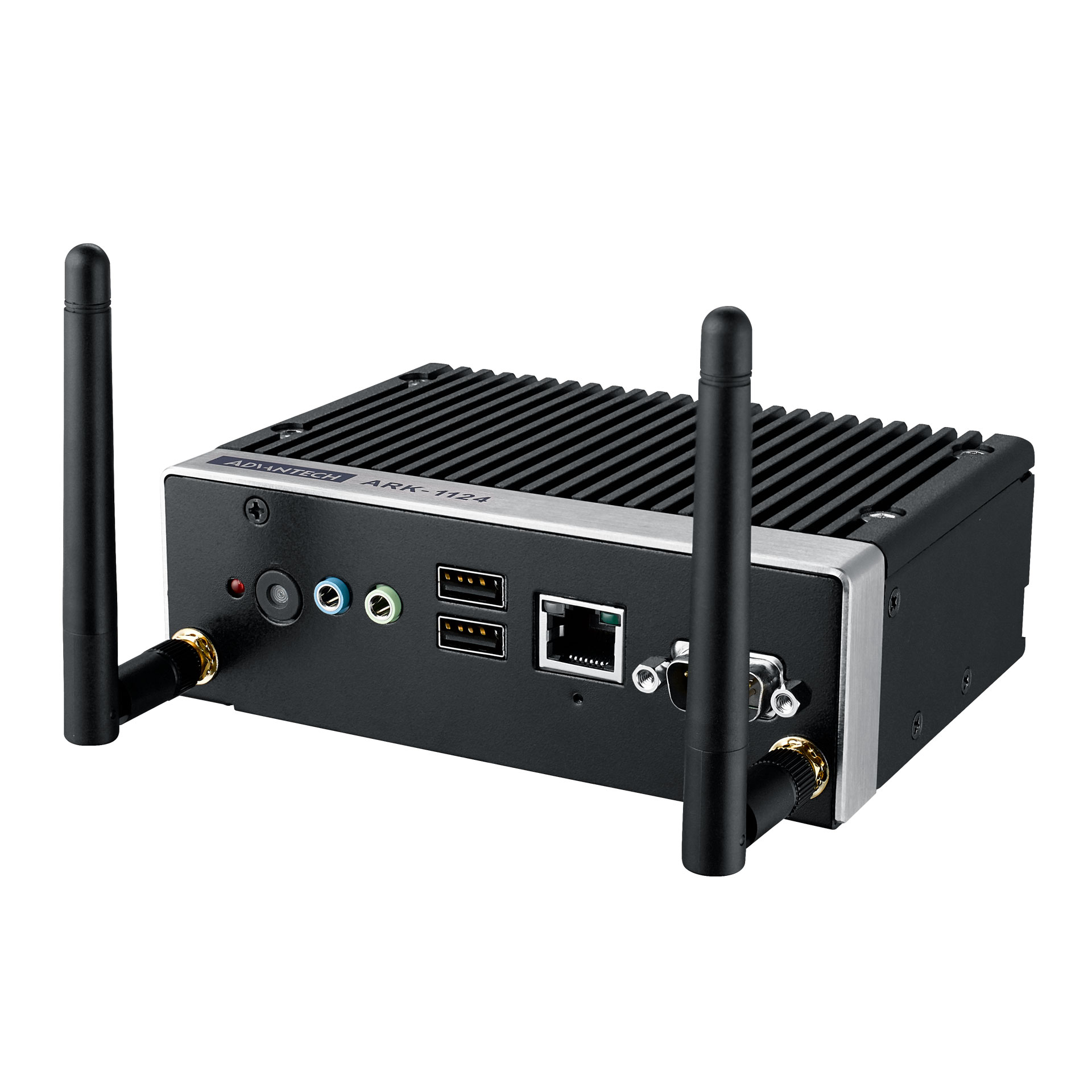 Der lüfterlose und extrem kompakte Embedded PC ARK-1124 ist mit einer SoC CPU vom Typ Intel Celeron N3350 Dual Core bestückt.