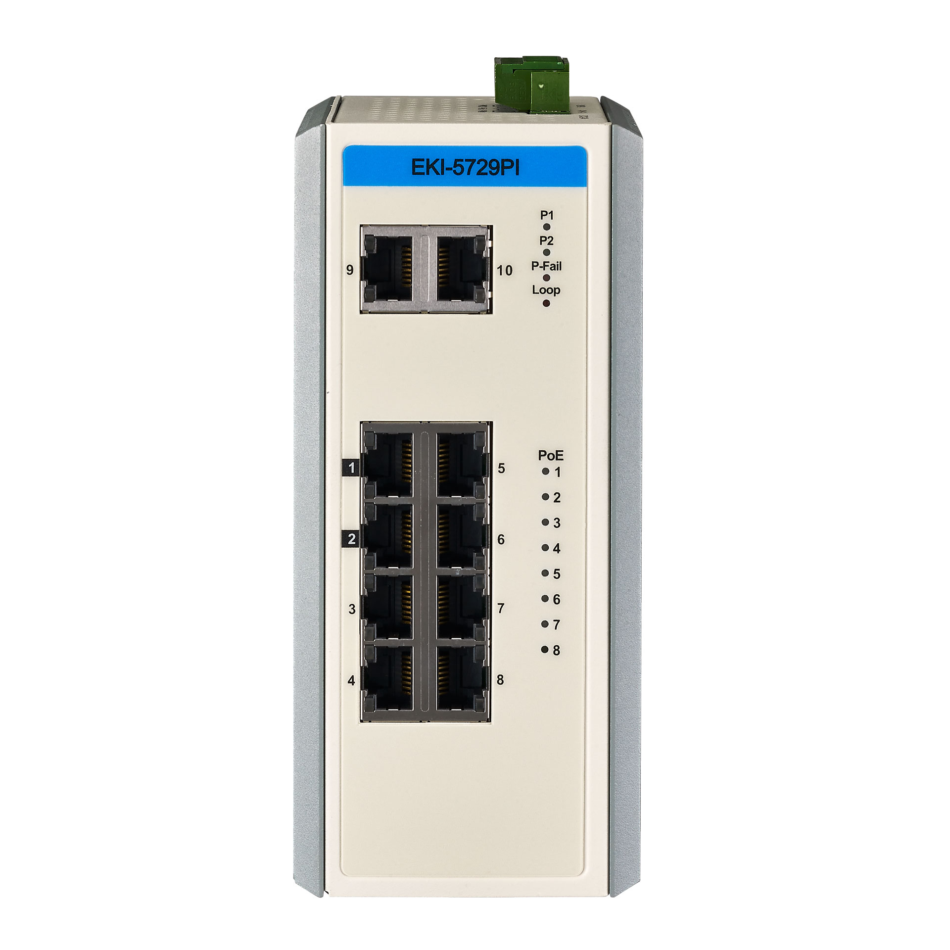 Der Unmanaged PoE Ethernet Switch EKI-5729PI verfügt über zehn 10/100/1000BASE-T/TX Ethernet Ports.