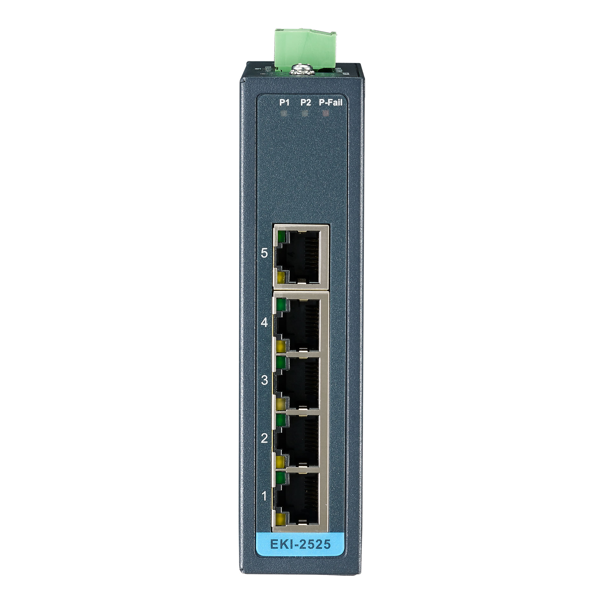Der Unmanaged Ethernet Switch EKI-2525 ist mit fünf 10/100 Mbit/s Ethernet Ports ausgestattet.
