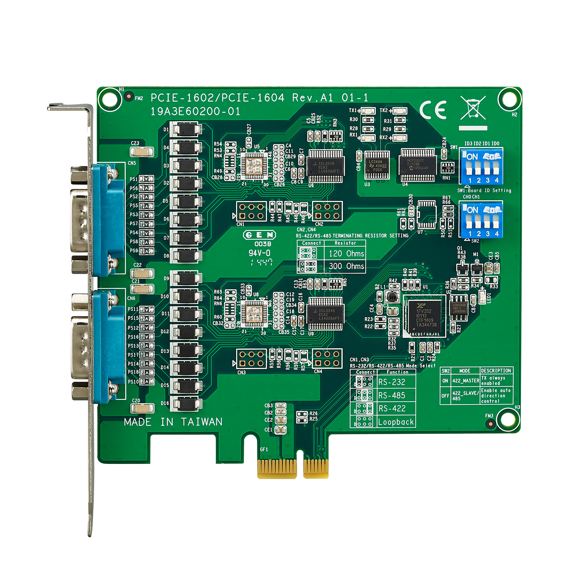 Die Ports sind mit einem kV gegen EFT Störimpulse abgesichert. Je nach Variante hat die Interface-Karte einen Isolationsschutz von 3.000 VDC. Für die Kommunikation mit dem Host verfügt sie über ein PCI Express Businterface. Ihre Übertragungsgeschwindigkeit liegt bei bis zu 921.6 kbps. Sie arbeitet mit dem Kommunikationschipsatz XR17V352. Durch den weiten Arbeitstemperaturbereich der Interface-Karte PCI-1604 kann sie in Industrie PCs verbaut werden, die in harschen Umgebungen eingesetzt werden.
