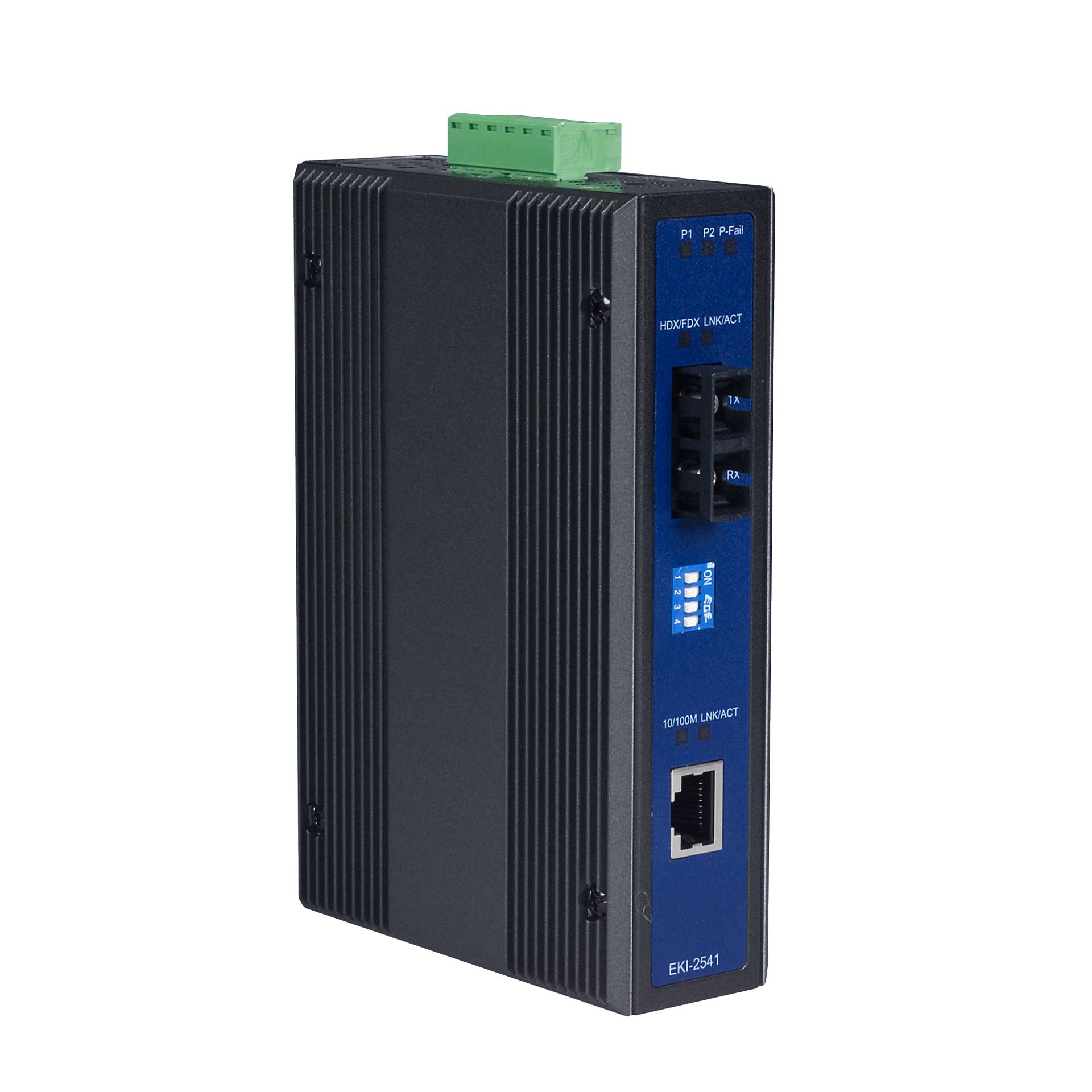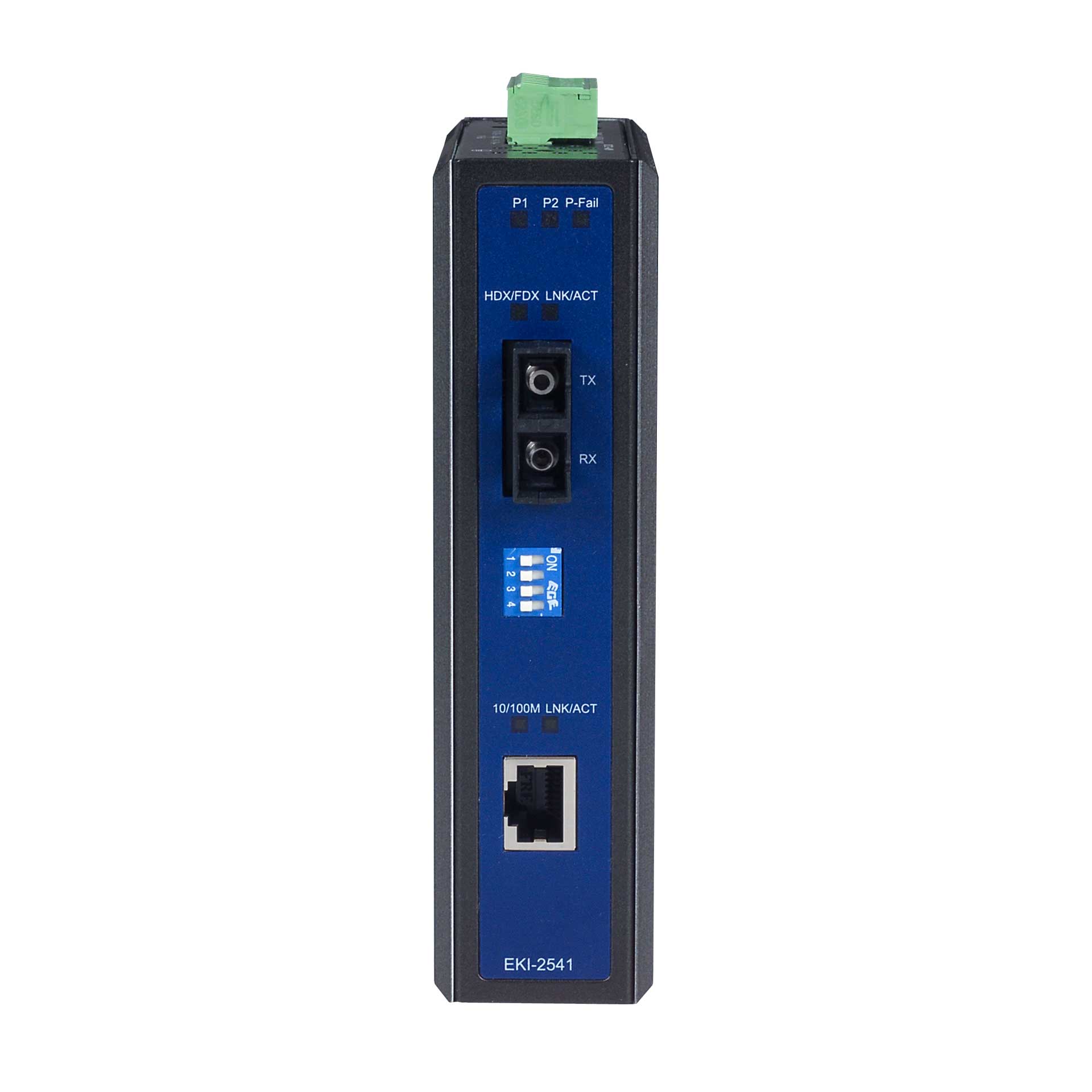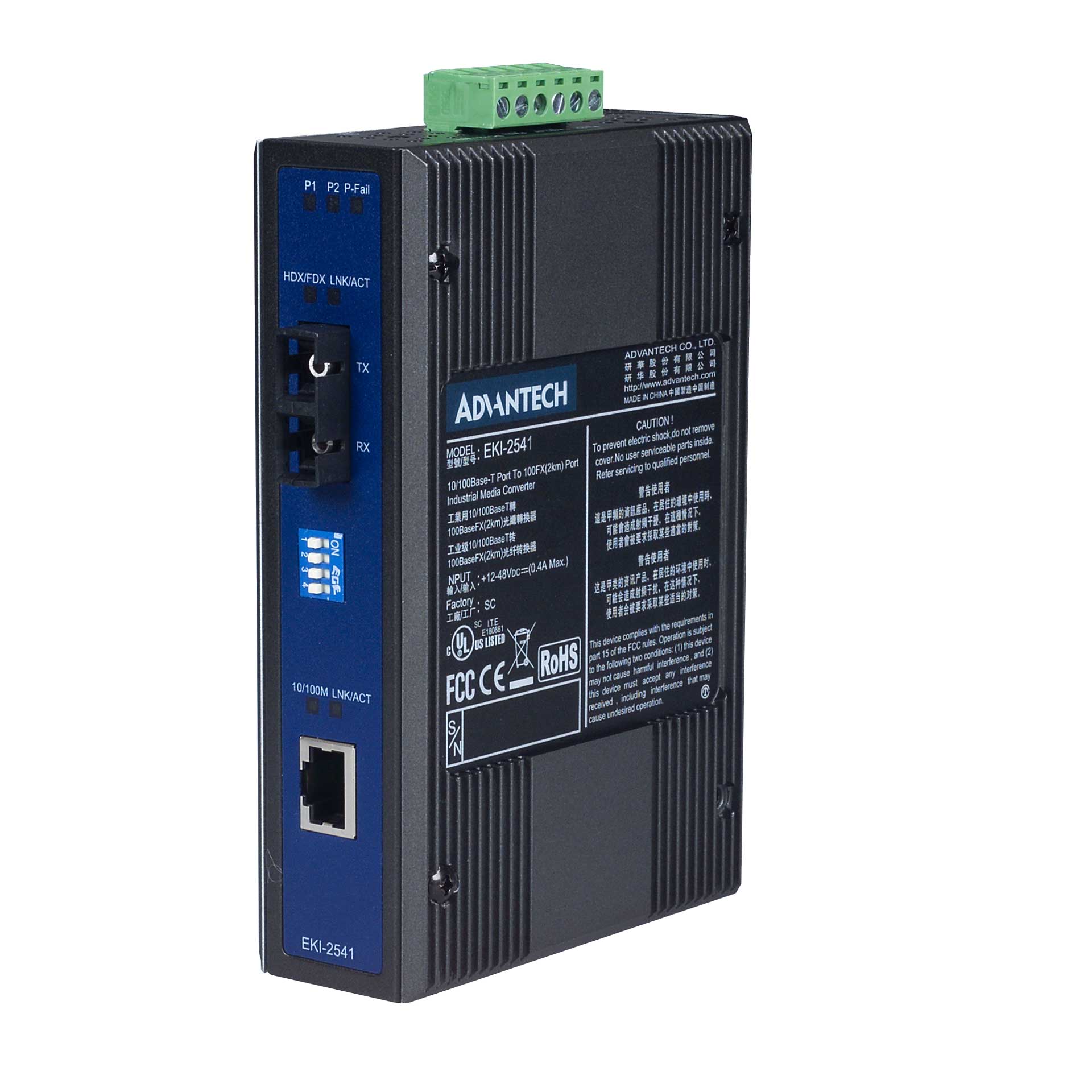 Der Converter hat einen 10/100 Base-T Ethernet Port und – je nach Ausführung – einen Single Mode oder einen Multi Mode Fiber Optic Port. Der Media Converter kann mit einer Versorgungsspannung von 12 bis 48 VDC betrieben werden. Um eventuelle Ausfallszeiten zu vermeiden und einen reibungslosen Betrieb zu ermöglichen, verfügt er über zwei redundante Anschlüsse für die Versorgungsspannung. Zusätzlich verfügt er einen Verpolungsschutz und einen Schutz vor Überlaststrom. Dank dieser Mechanismen, die für einen unterbrechungsfreien Betrieb sorgen, des großen Betriebstemperaturbereich und des robusten Chassis eignet sich der EKI-2541 optimal für einen Einsatz in rauer industrieller Umgebung.