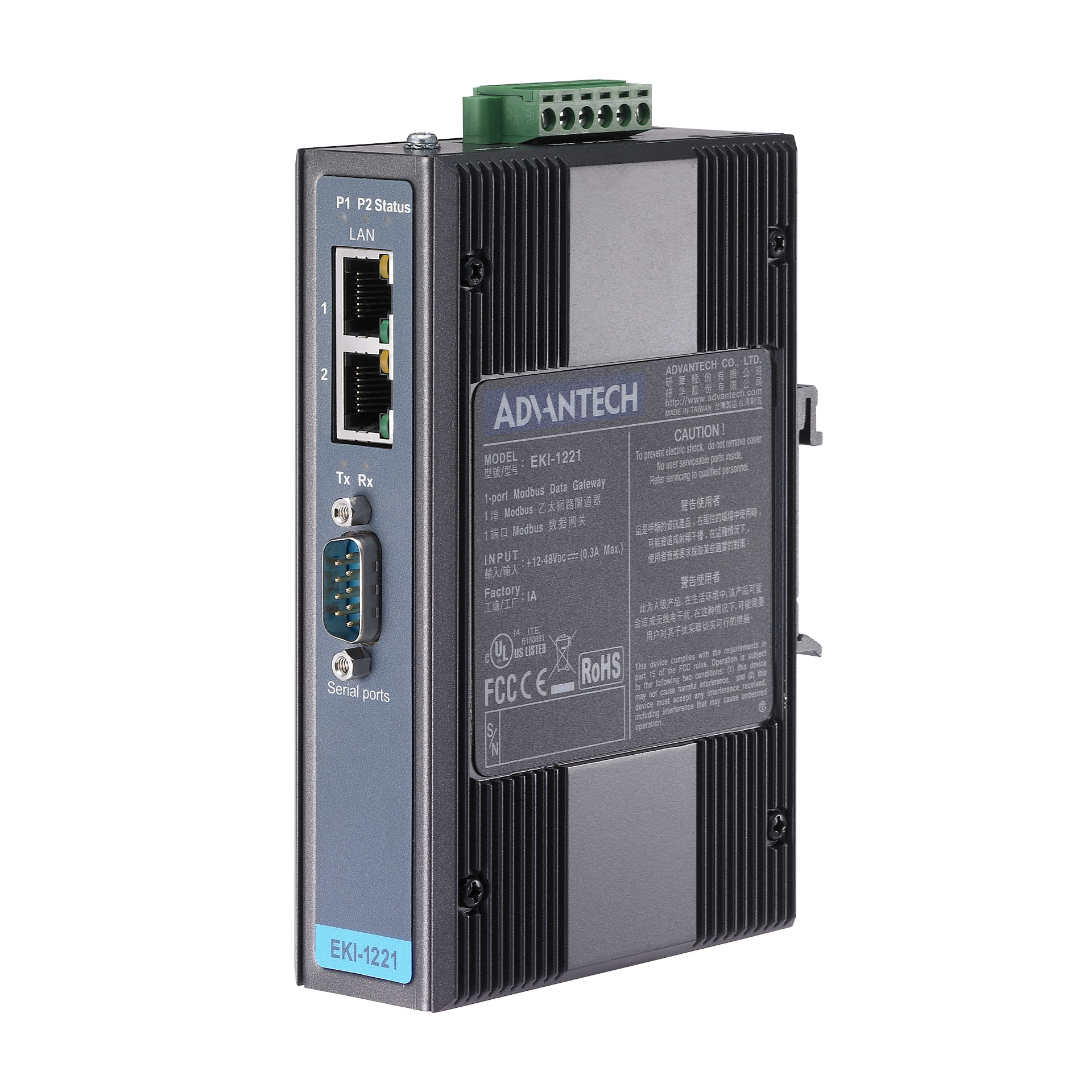 Dieses Gateway ermöglicht die Einbindung von seriellen Modbus Geräten in TCP/IP basierte Netzwerke. Die 10/100 Mbit/s Ethernet Ports sind vollkommen unabhängig voneinander und verfügen jeweils über eine eigene MAC Adresse. Dadurch kann die Netzwerkverbindung aufrechterhalten werden, auch wenn einer der Ports durch einen Defekt ausfallen sollte. Der Gateway kann mit einer Versorgungsspannung von 12 bis 48 VDC betrieben werden. Um eventuelle Ausfallszeiten zu vermeiden und einen reibungslosen Betrieb zu ermöglichen, verfügt es über zwei redundante Anschlüsse für die Versorgungsspannung. Zum Schutz verfügt der Gateway über einen ESD-Schutz von 15KV. Optional gibt es den EKI-1221 mit einer zusätzlichen Port-zu-Port-Isolation. Sein Arbeitstemperaturbereich liegt - Je nach Ausführung - zwischen -10 und 60 °C oder zwischen -40 und 80° C. Dank seiner robusten Bauform eignet sich der Modbus Gateway EKI-1221 ideal für den Einsatz im rauen Industriealltag.