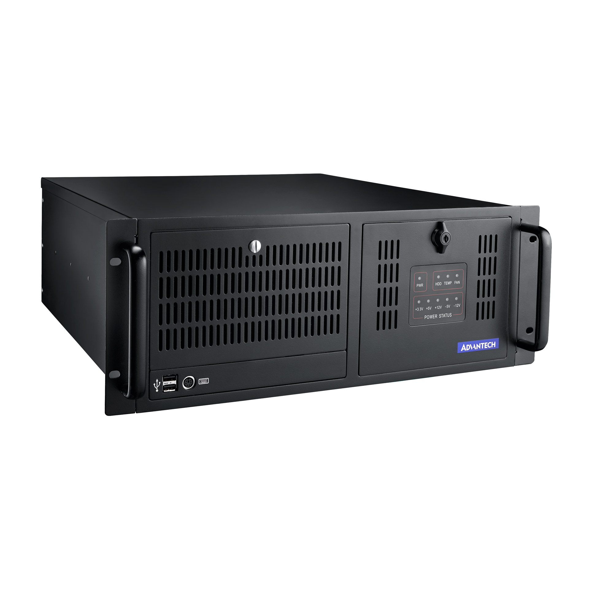 Die zwei leistungsstarken Lüfter auf der Frontseite sind aufgrund ihrer großen Bauform sehr leise und durch Filtermatten gegen den Eintritt von Staub geschützt. Status-LEDs zeigen den Zustand von Festplatten, Lüftern, Temperatur und jeder einzelnen Versorgungsspannung an. Es stehen eine große Anzahl verschiedener ATX zur Verfügung. Das ACP-4000MB Rackmount-PC Gehäuse hat eine verschließbare Frontklappe, dadurch kann ein unbefugter, mechanischer Zugriff auf die Laufwerke verhindert werden.