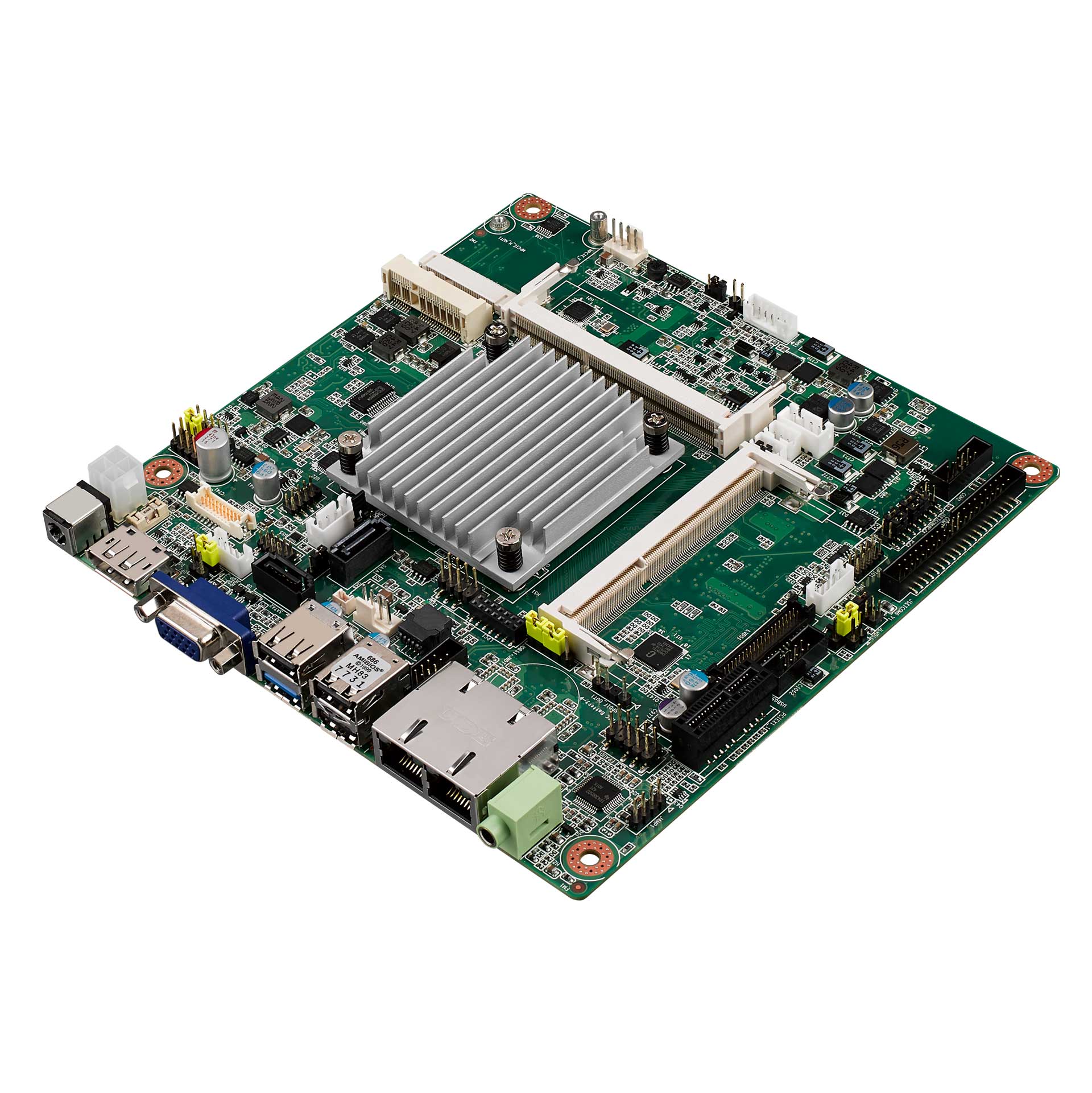 Das industrielle Mini-ITX-Mainboard verfügt über eine Vielzahl an seriellen Schnittstellen. Über die Grafikinterfaces DVI, VGA und LVDS lassen sich sowohl herkömmliche Monitore als auch industrielle Displays anschließen. Über den PCI-Express-Steckplatz sowie die beiden Mini-PCI-Express-Slots kann das industrielle Mini-ITX-Mainboard mit unterschiedlichen Addon-Boards erweitert werden. So kann es flexibel für den Einsatz in industriellen Systemen ausgerüstet werden.