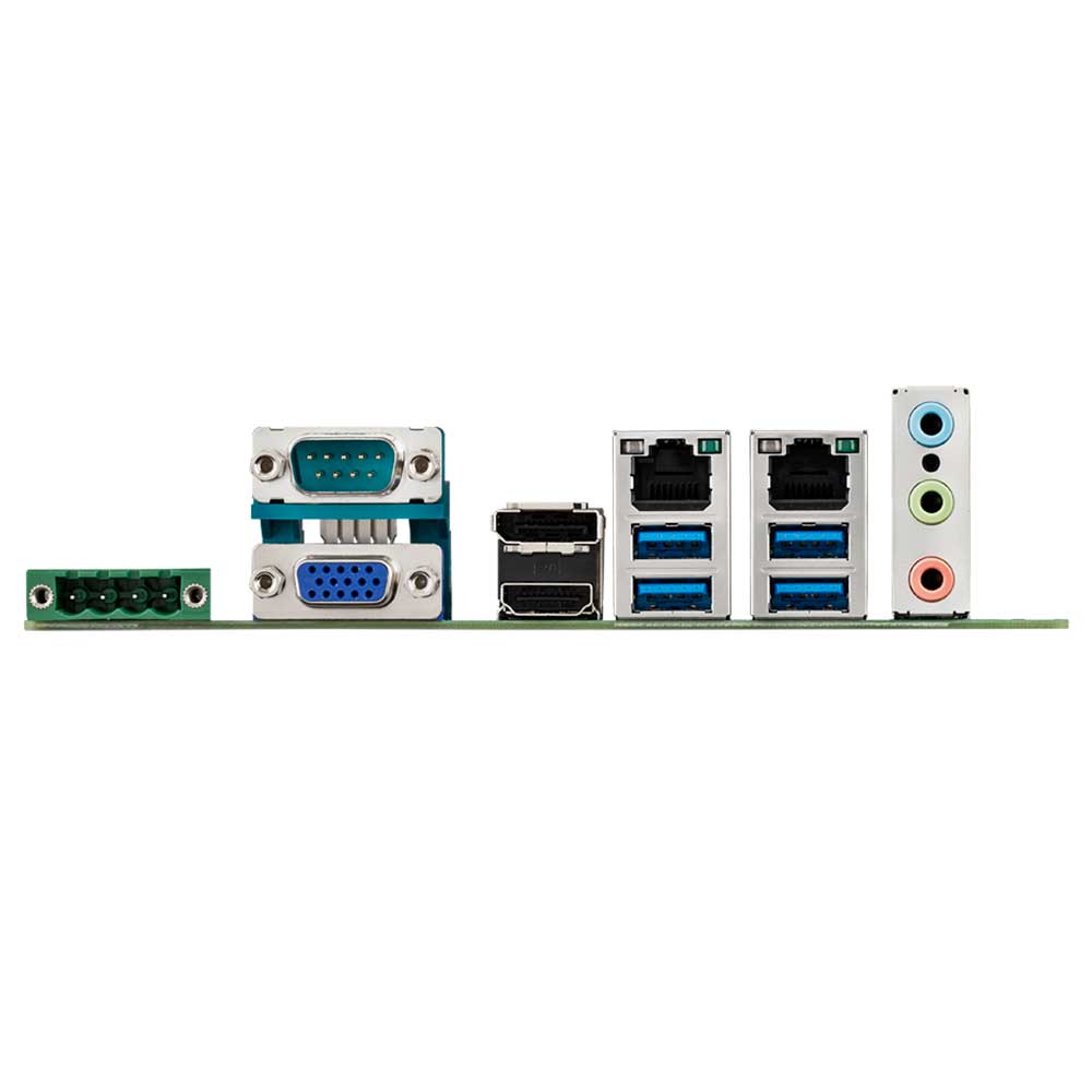 Mit VGA, HDMI, LVDS und Display Port 1.2 stehen vier verschiedene Grafikinterfaces zum Anschluss unterschiedlicher Monitor- und Display-Lösungen zur Verfügung, es können bis zu drei Monitore gleichzeitig angeschlossen werden. 2 GigaBit Ethernet-Ports, 10 USB-Schnittstellen und 2 serielle Interfaces sorgen für eine gute Kommunikation mit der industriellen Umwelt. Zusätzlich hat das Mainboard einen mini PCIe und einen PCIe Slot und kann so schnell mit Add-on Boards bestückt werden. Über einen M.2 Slot kann eine zusätzliche Solid State Disk angeschlossen werden. Eine Besonderheit dieses Mainboards ist ein Weitbereichseingang, über den es mit einer Versorgungsspannung von 12 bis 24 VDC versorgt werden kann. Für einen sicheren und fehlerfreien Betrieb sorgt der große Arbeitstemperaturbereich von 0 bis 60 °C.