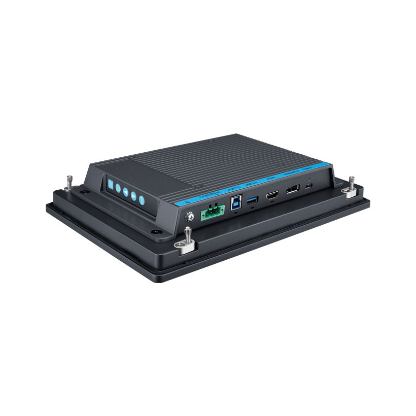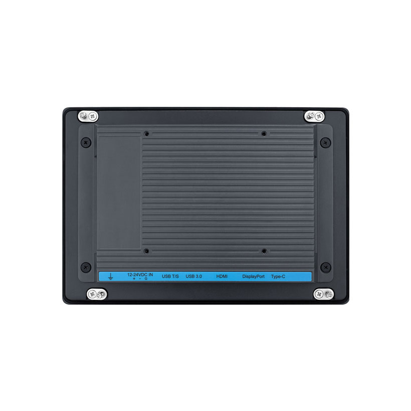 Er verfügt über einen Typ-C USB Anschluss, dadurch kann er mit einem einzigen Kabel an einen Rechner angeschlossen werden. Dank der IP66 Front ist der Industrie-Monitor gegen das Eindringen von Stäuben und Spritzwasser geschützt.