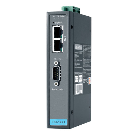 Der EKI-1221 ist ein Modbus Gateway mit einer seriellen Schnittstelle und zwei Ethernet Ports.